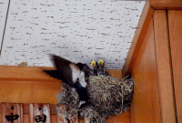 修寶館の室内木札の所に燕の巣作り